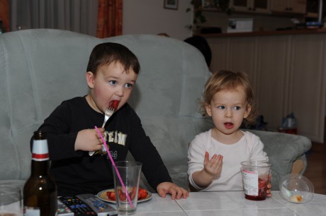 Sedíme, jíme jahody a čučíme na Večerníčka.